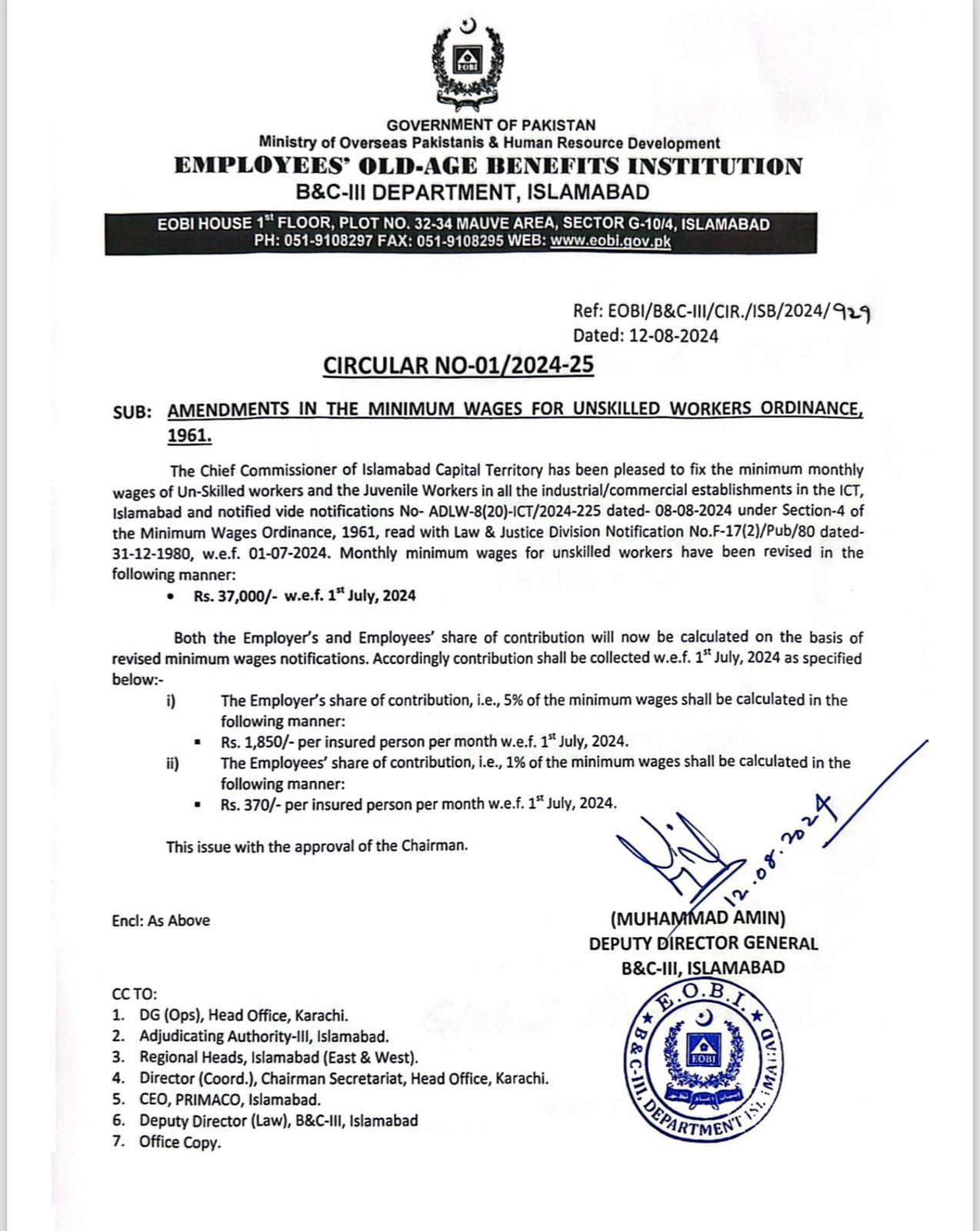 Amendments in the minimum wages for unskilled workers ordinance, 1961.