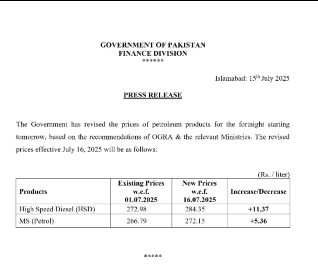 POL prices notification dated 15.7.25