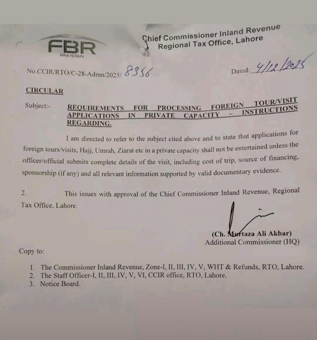 CCIR, RTO, Lahore Circular of Processing foreign tour/visit instructions requirements for applications in private capacity regarding dated 4.12.15