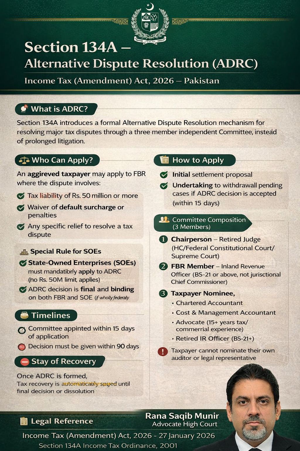 Section 134A Alternative Dispute Resolution (ADRC) Income Tax (Amendment) Act, 2026 - Pakistan